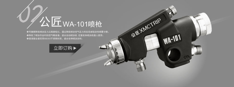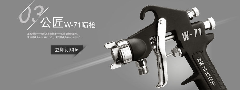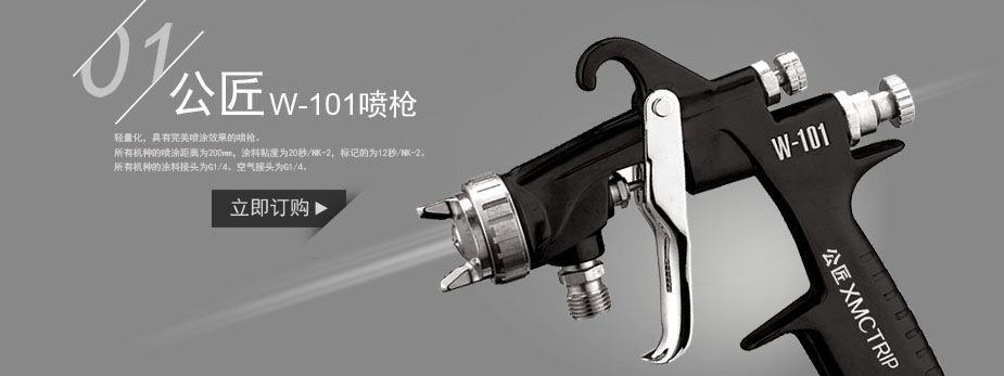 型 号 | W-101-151G | W-101-152G | W-101-181G | | 涂料供给方式 | 重力式 | | 涂料喷嘴口径 | 1.5φmm | 1.8φmm | 喷涂空气压力 | 0.24 (2.5)Mpa(kgf/c㎡) | 空气使用量 | 145L/min | 225L/min | 170L/min | 涂料喷出量 | 200ML/min | 190ML/min | 240ML/min | | 喷 幅 | 180mm | 190mm | 高微粒化 | | ● | | 通用微粒化 | ● | | ● | 适用空气枪帽的型号 | K1 | H2 | N1 | | 所用空压机 | 0.75∽1.5KW | 1.5KW | 重 量 | 295g | 用 途 | 木工.家具喷涂.金属喷涂用 | 汽车修补喷涂.木工.家 具喷涂.金属喷涂用. | 木工.家具喷涂.金属喷涂用 |